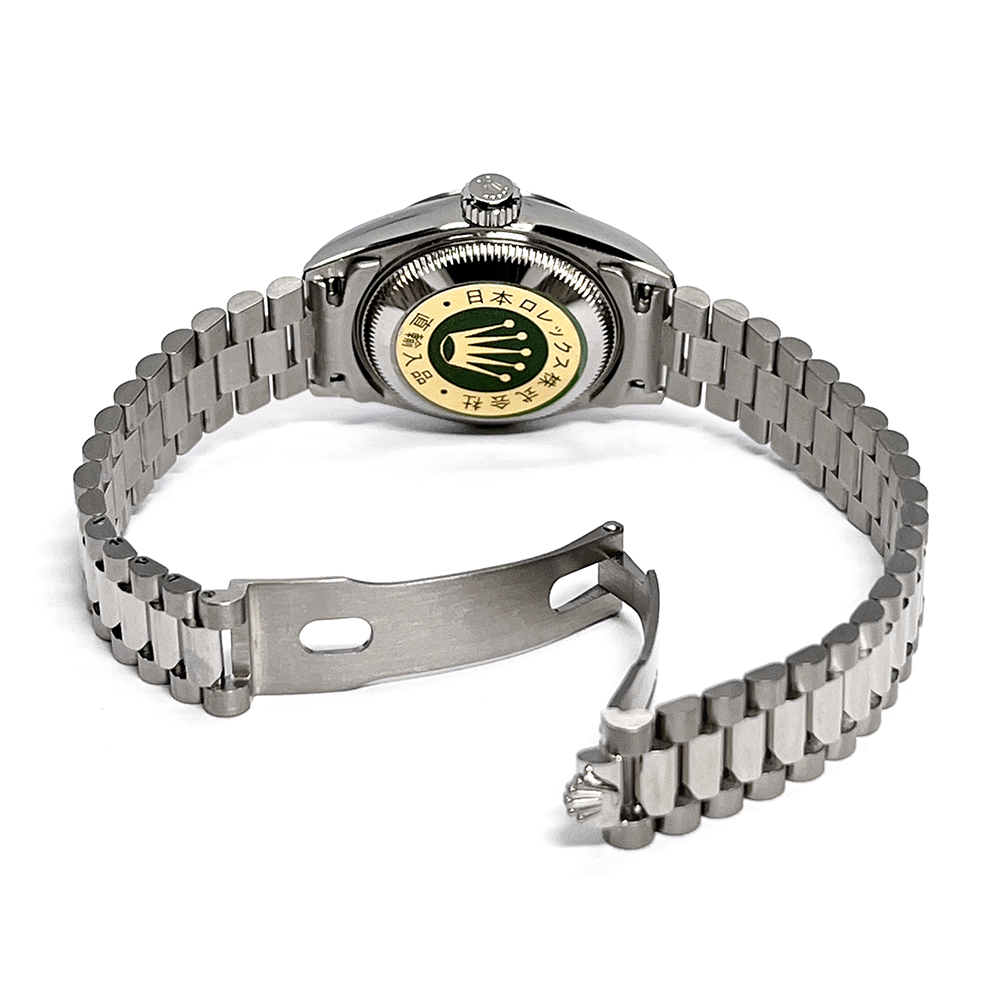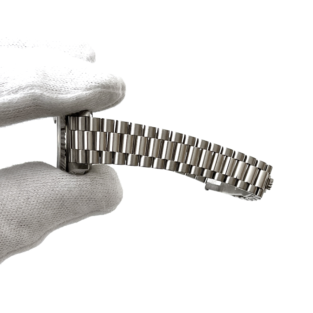 金・プラチナ無垢素材のみに使用されるプレジデントブレスレットと文字盤で輝く10Pのダイヤモンドが、ワンランク上のラグジュアリーを感じさせてくれます。