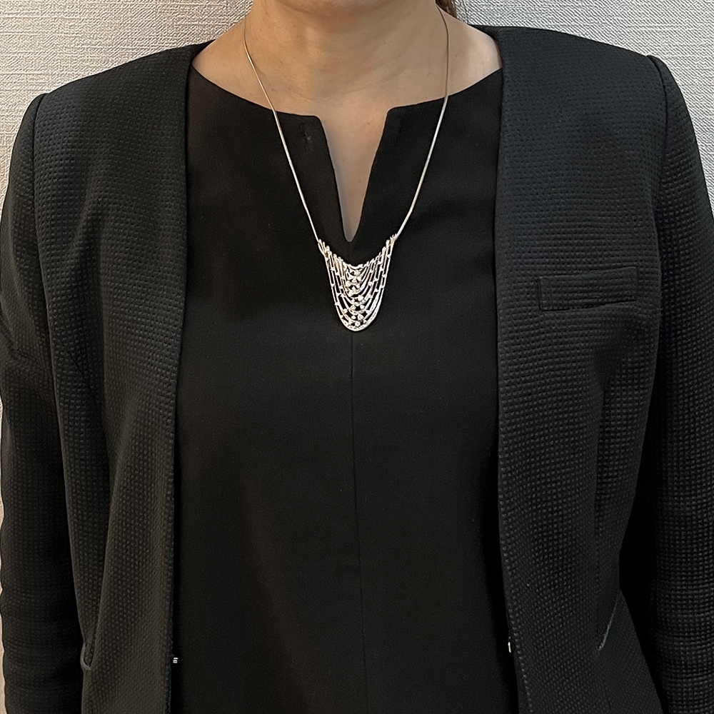ボリューム感のあるトップは胸元を華やかに演出してくれます。ホワイトゴールドのスネークチェーンはスライド式で調整可能ですのでお好みのポジションでご装着いただけます。