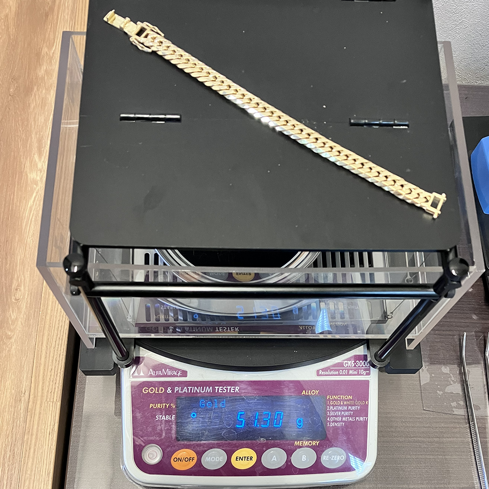 K18検定マーク付、51.30gの6面ダブル喜平ブレスレットです。