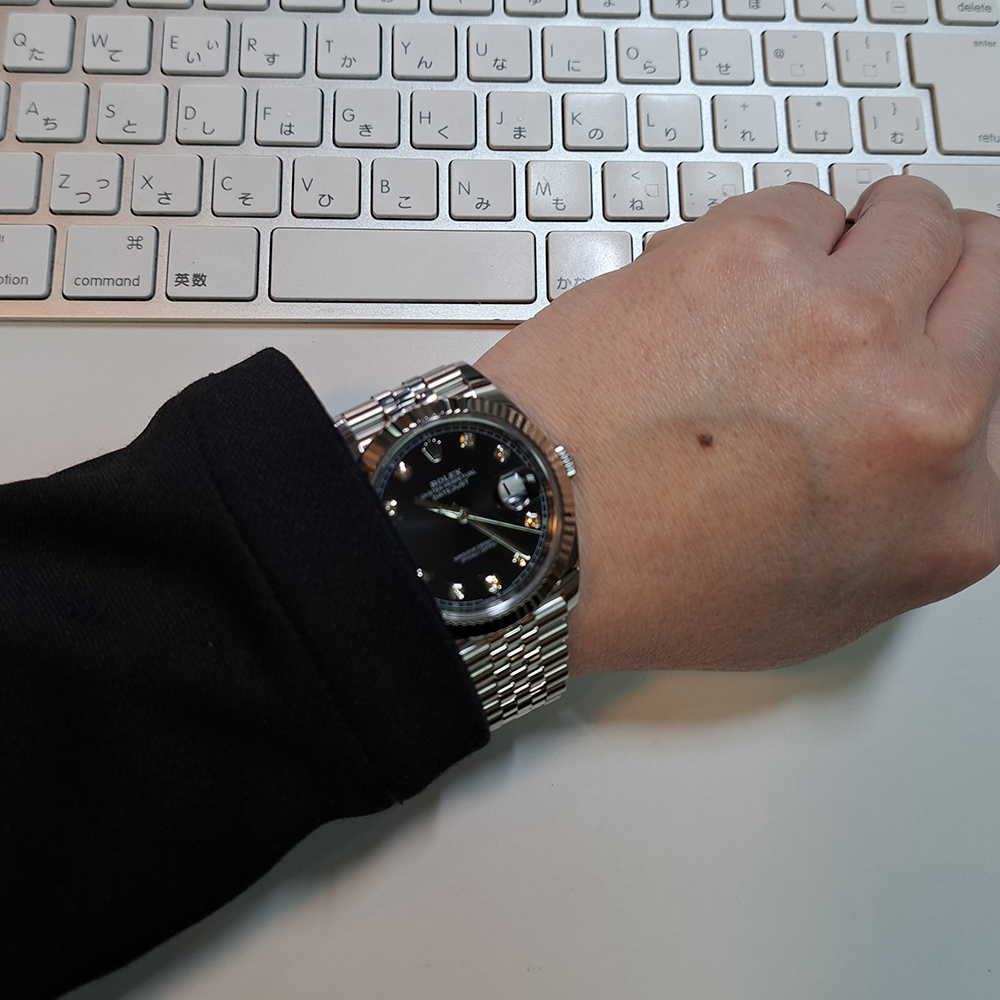 ロレックス デイトジャスト 126334G ブラックが入荷致しました。ブラックダイヤルに10P純正ダイヤモンドをセッティングしたゴージャスなモデルです。こちらの商品は目立った傷等の無い綺麗な状態です。ギャランティに2023年に購入した記載があります。
