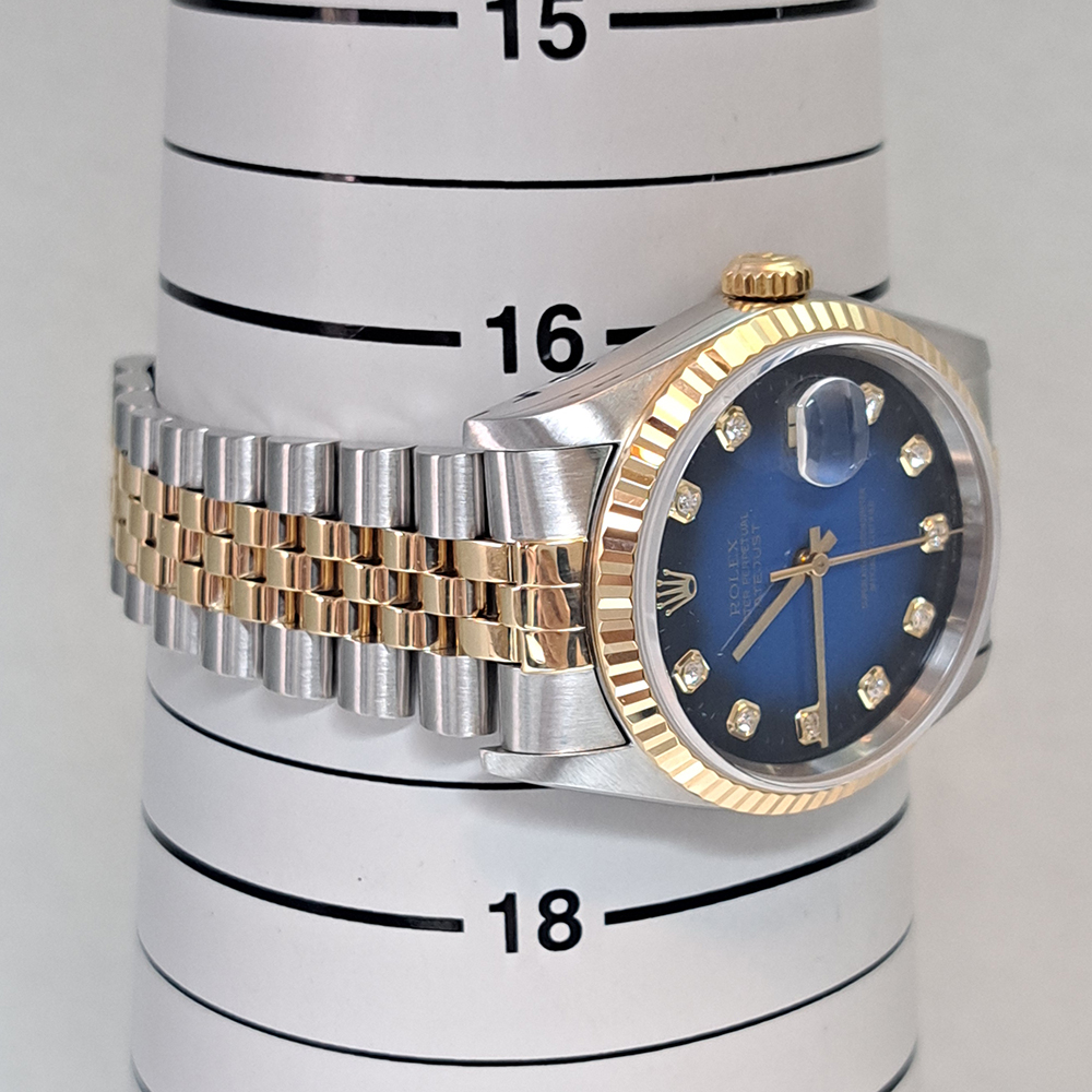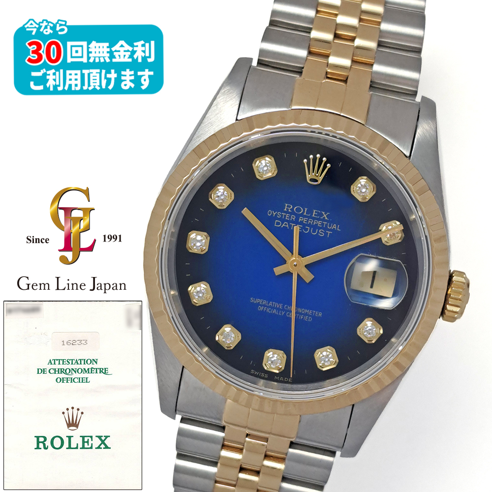 ロレックス デイトジャスト 16233G W番 YG/SS ブルーグラデーション 10P純正ダイヤ ギャラ付 メンズ 自動巻 時計