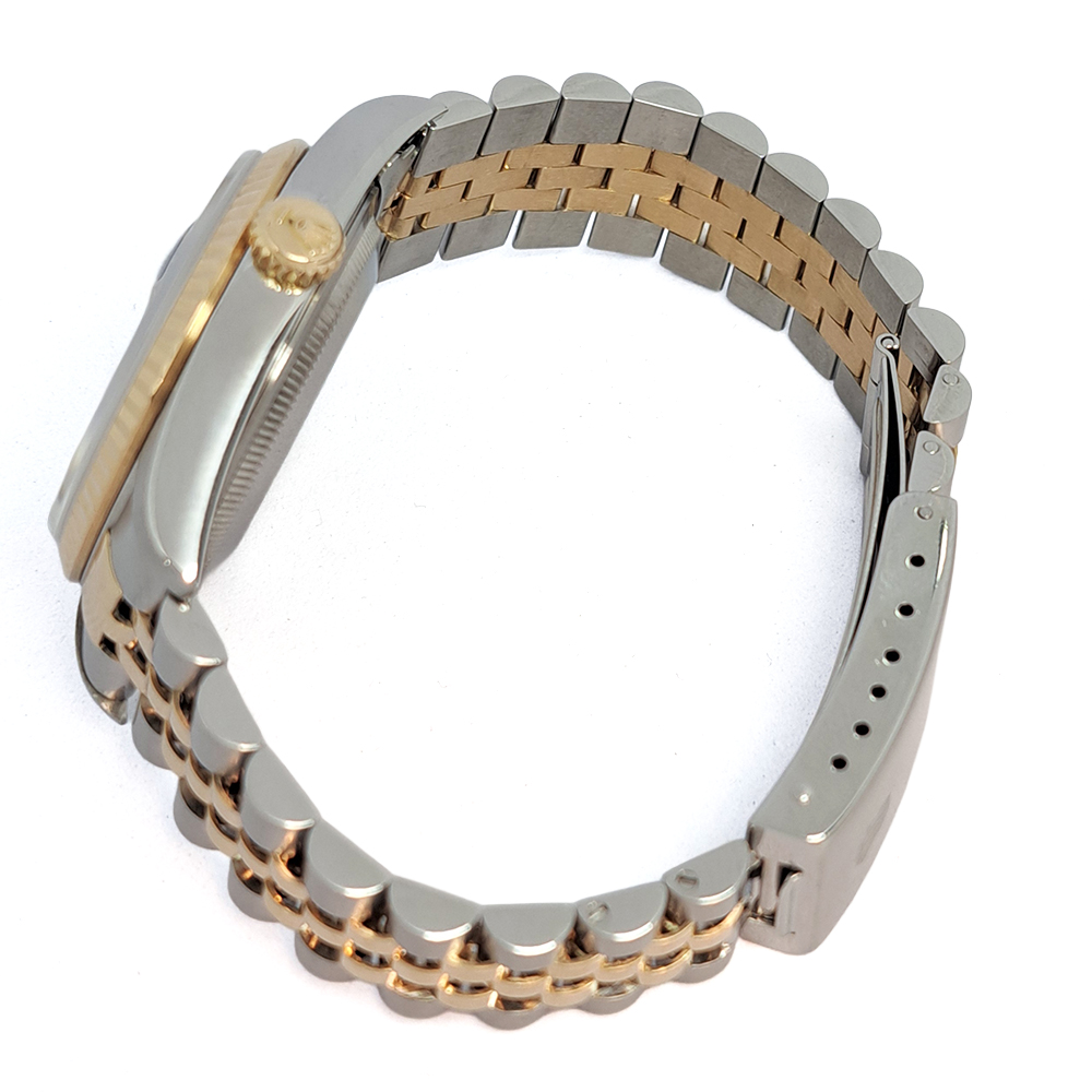 ジュビリーブレスレット、フルーテッドベゼルとの組み合わせは、華やかでエレガントな印象を際立たせています。普遍的なデイトジャストの中でも、特に個性的な一本をお探しの方にお勧めです。