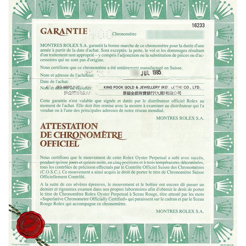付属品:保証書(1995年7月)・当店オリジナルボックス