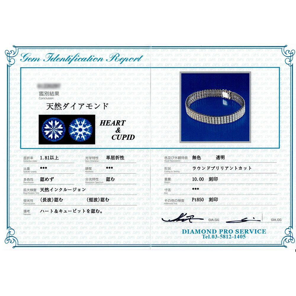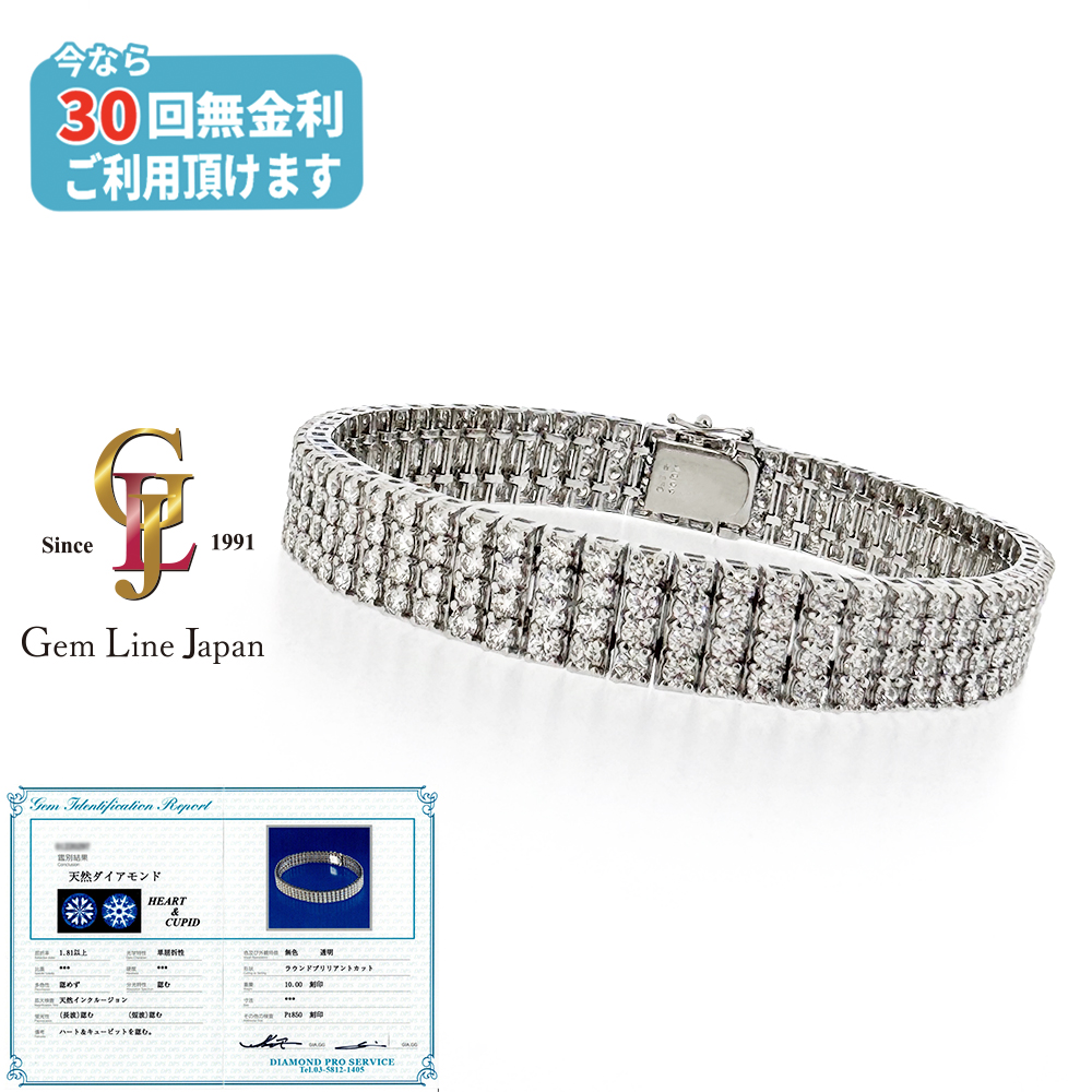 全石ハート&キューピッド鑑別書付 Pt850 ダイヤモンド 10.00ct ブレスレット