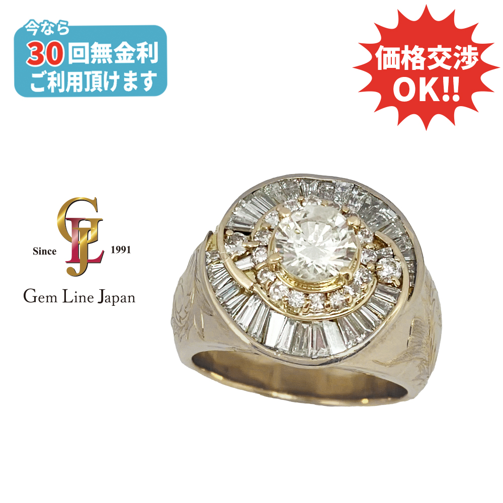 K18 ダイヤモンド 1.064ct 脇石ダイヤモンド 0.77ct/0.39ct メンズ リング
