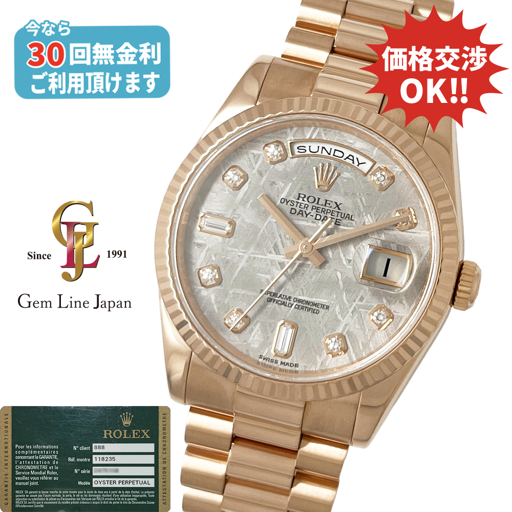 ロレックス デイデイト 118235A Z番 メテオライト/純正10Pダイヤ OH済 ギャラ付 メンズ 自動巻 時計