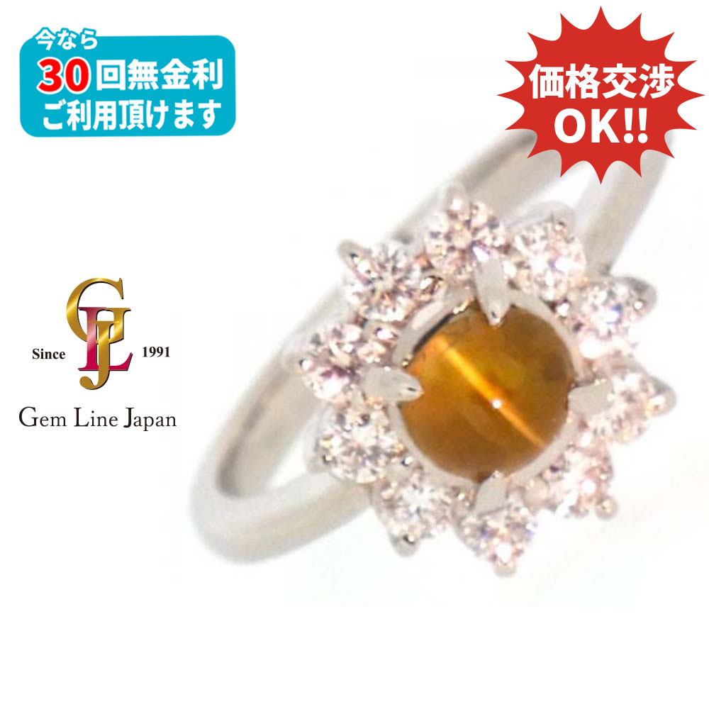 GRJソーティング付 キャッツアイ 4.085ct ダイヤモンド 1.27ct プラチナ リング