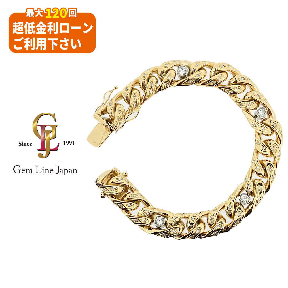 超豪華 K18 Pm コンビ 120.12g ダイヤモンド 1.47ct 21cm メンズ ブレスレット