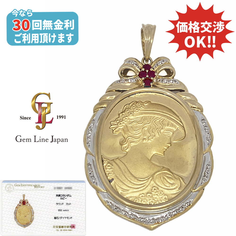 K24 K20 26.67g ルビー ダイヤモンド カメオモチーフ ペンダント トップ 日宝協総研カード鑑付