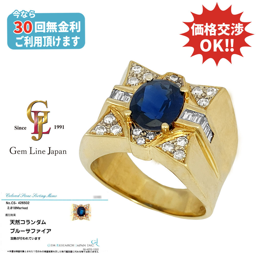 K18 18.93g ブルー サファイア 2.818ct ダイヤモンド メンズ リング カード鑑付き