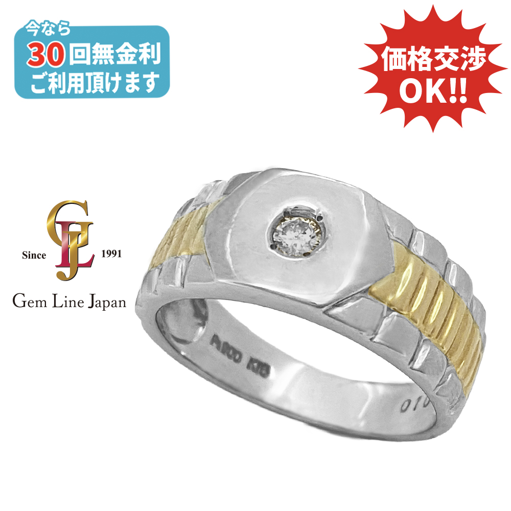 7.81g K18 Pt900 ダイヤモンド 0.10ct コンビ メンズ リング