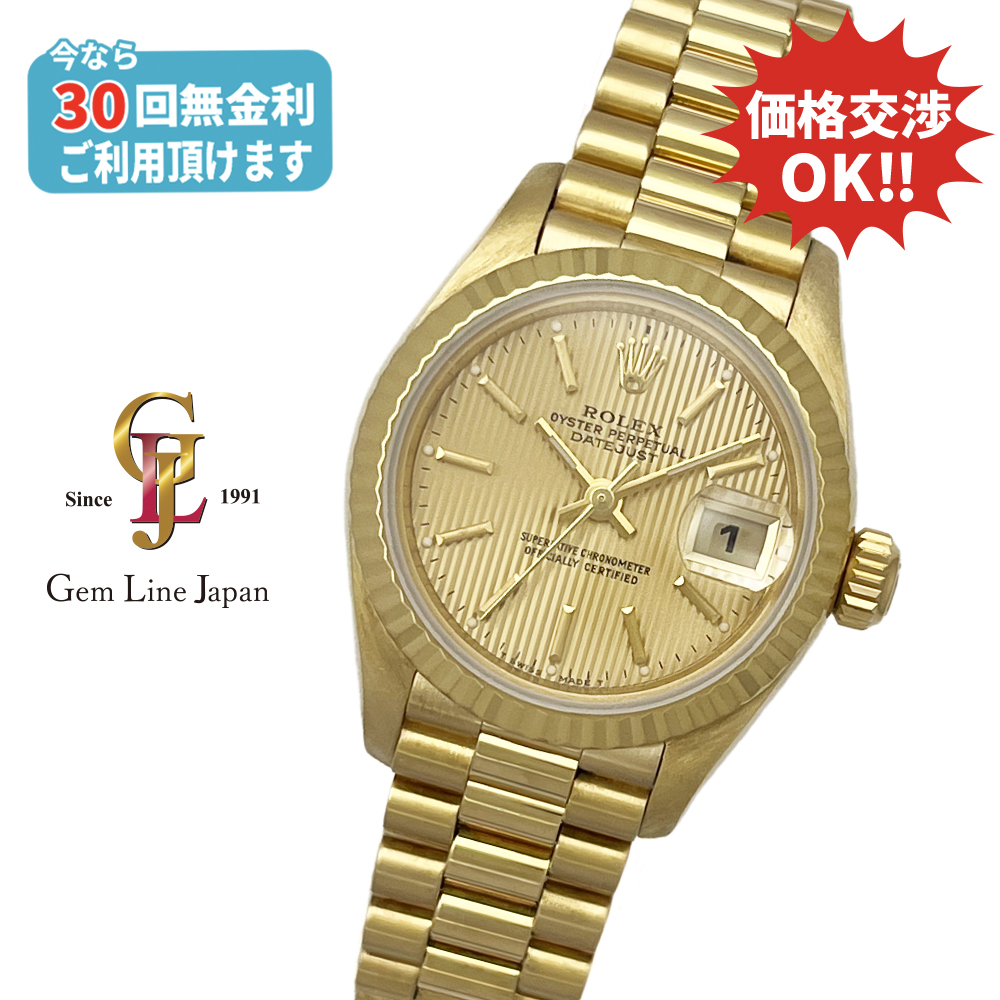ロレックス デイトジャスト 69178 95番 金無垢 シャンパン タペストリー レディース 自動巻 時計