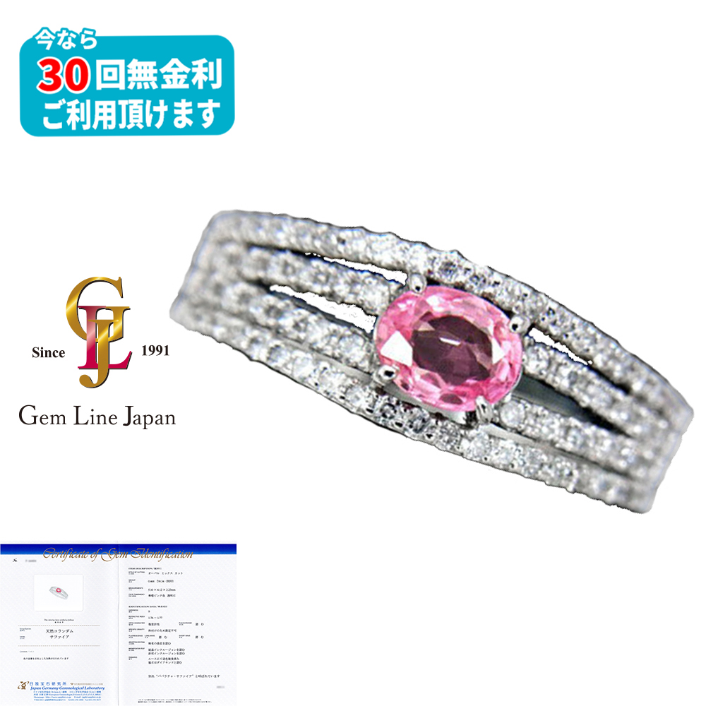 新品 稀少石 パパラチア サファイア 0.466ct ダイヤモンド 0.36ct 鑑別書付き プラチナ リング