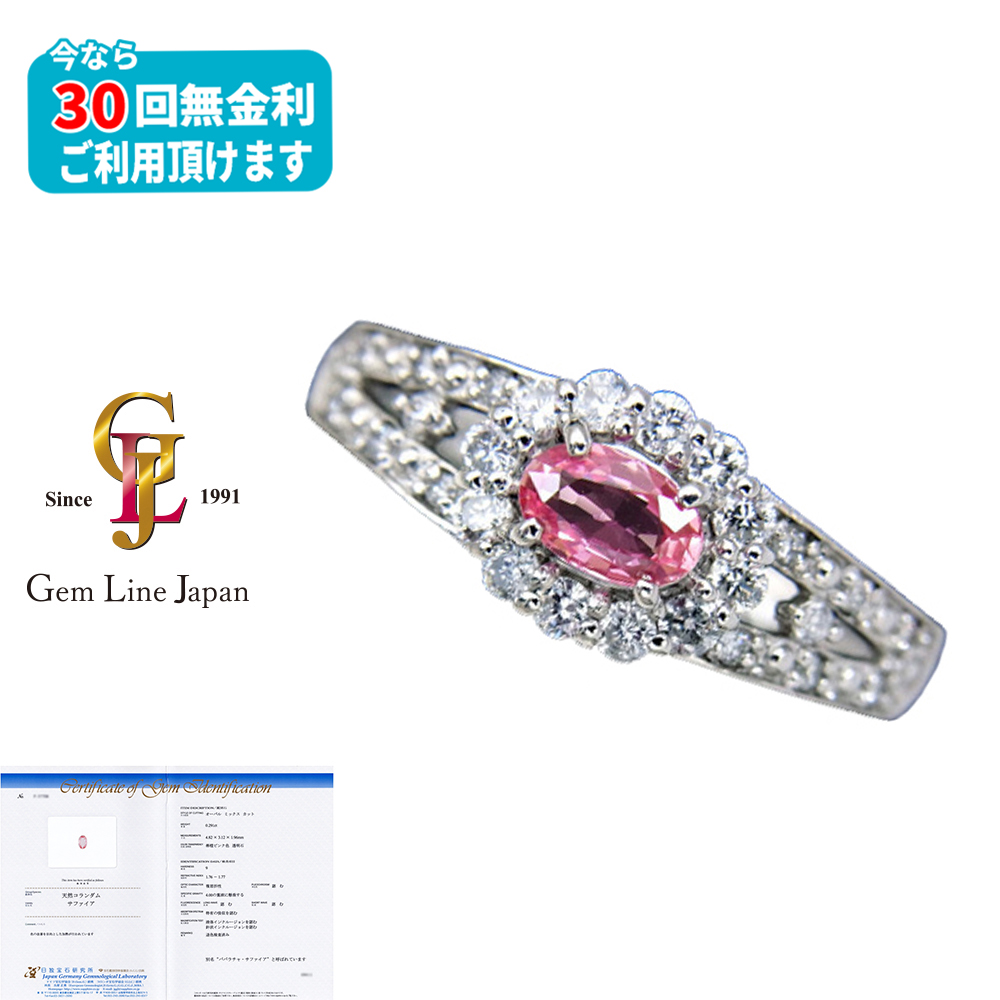 新品 稀少石 パパラチア サファイア 0.291ct ダイヤモンド 0.25ct 鑑別書付き プラチナ リング