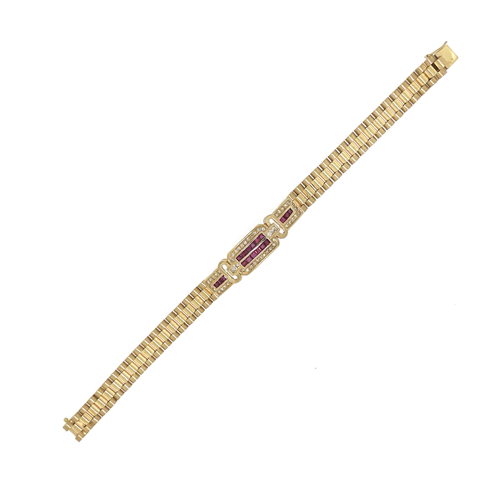 K18 29.55g ルビー 1.23ct ダイヤモンド 0.70ct プレジデントタイプ ブレスレット カード鑑付