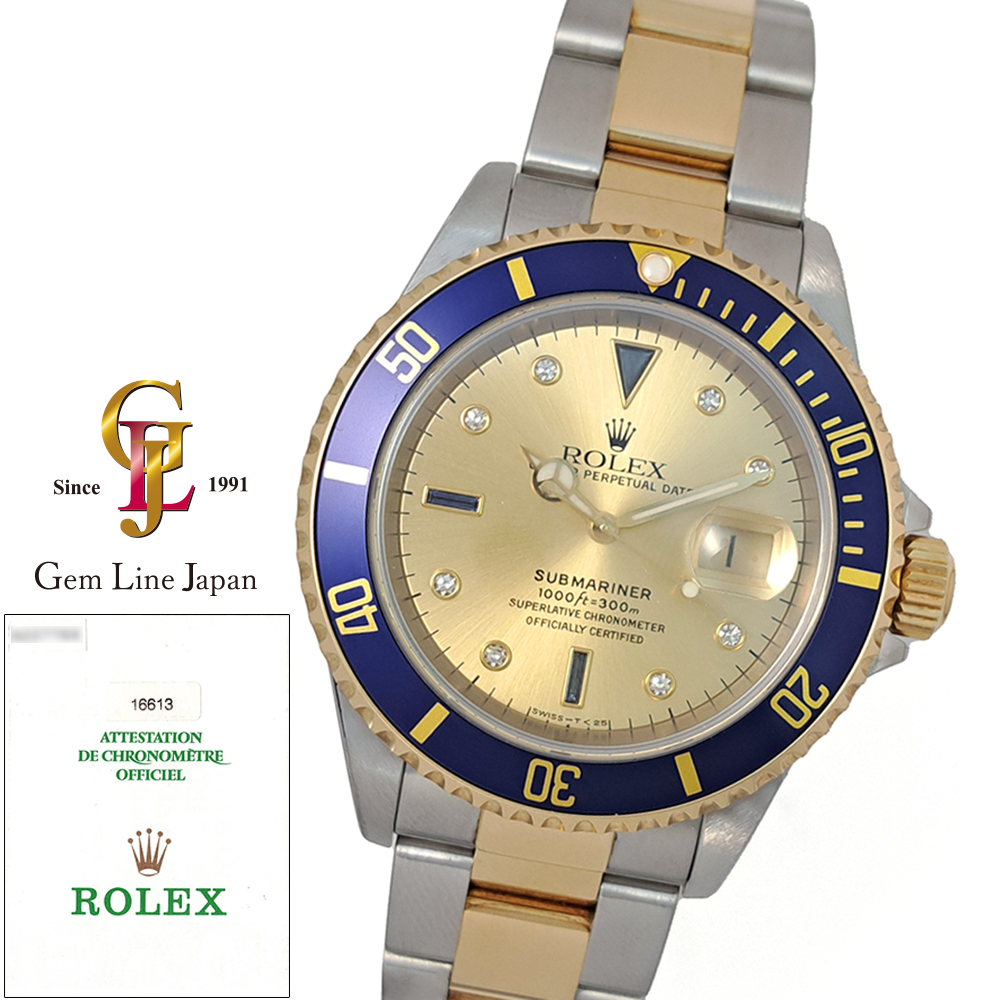 ロレックス サブマリーナ 16613SG A番 青サブ YG/SS シャンパンゴールド 純正サファイア・ダイヤ ギャラ付 メンズ 自動巻 時計