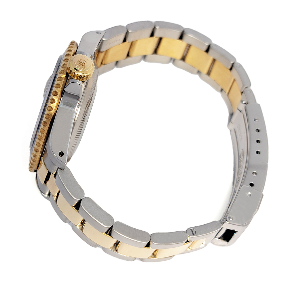 ブルーベゼルとシャンパンゴールドのダイヤルのコントラストがエレガントな逸品です。生産終了以降、年々市場に出回る個体が減少し、その稀少価値が上がっていますのでお早目にご検討下さい。