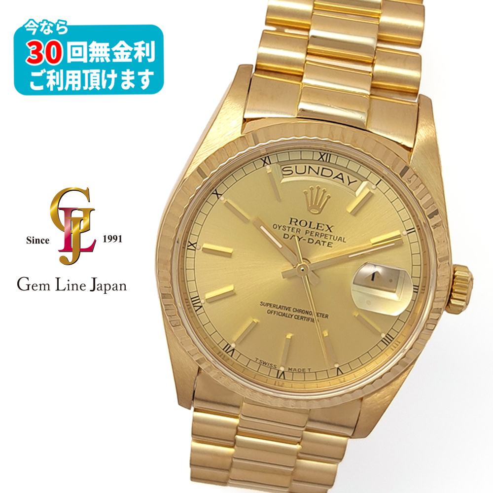 ロレックス デイデイト 18038 91番 金無垢 シャンパン バー メンズ 自動巻 時計