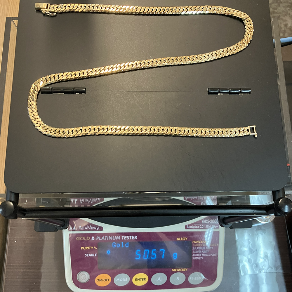 K18検定マーク付、50.57gの6面ダブル喜平ネックレスです。