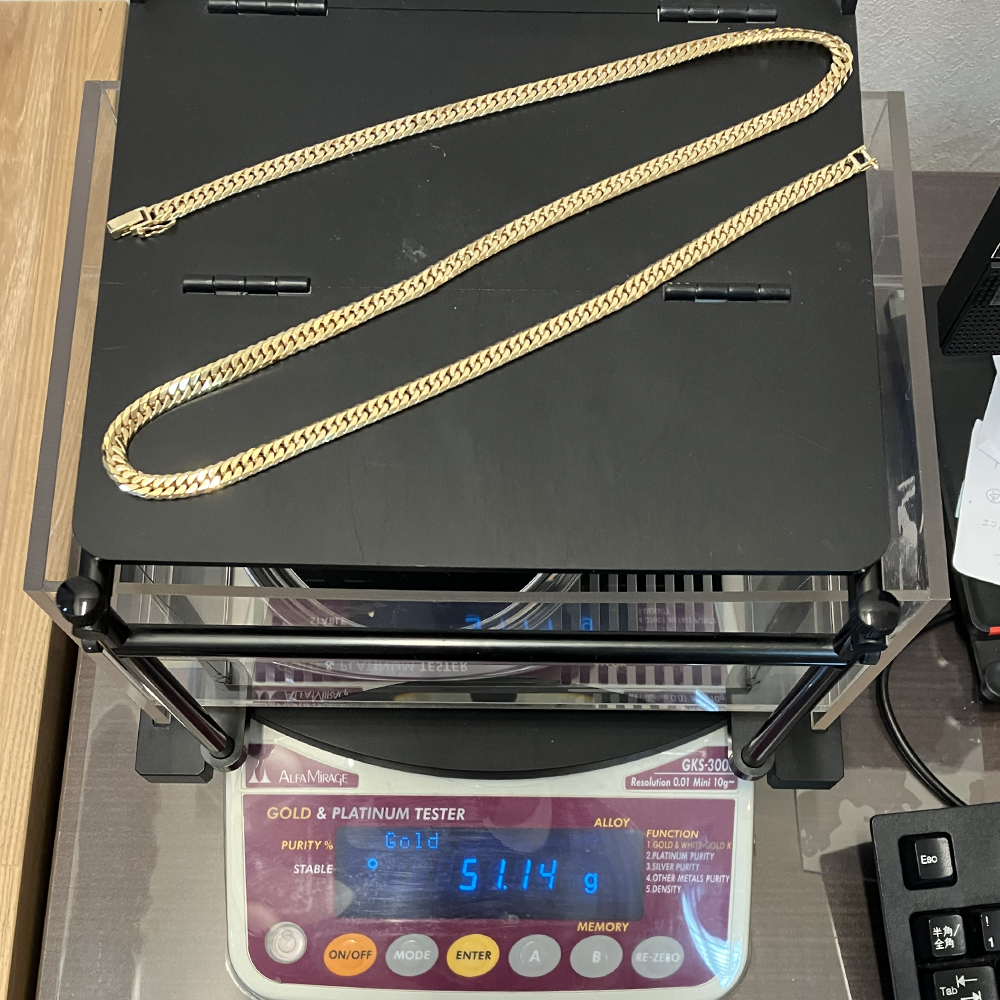 K18検定マーク付、51.14gの新品6面ダブル喜平ネックレスです。