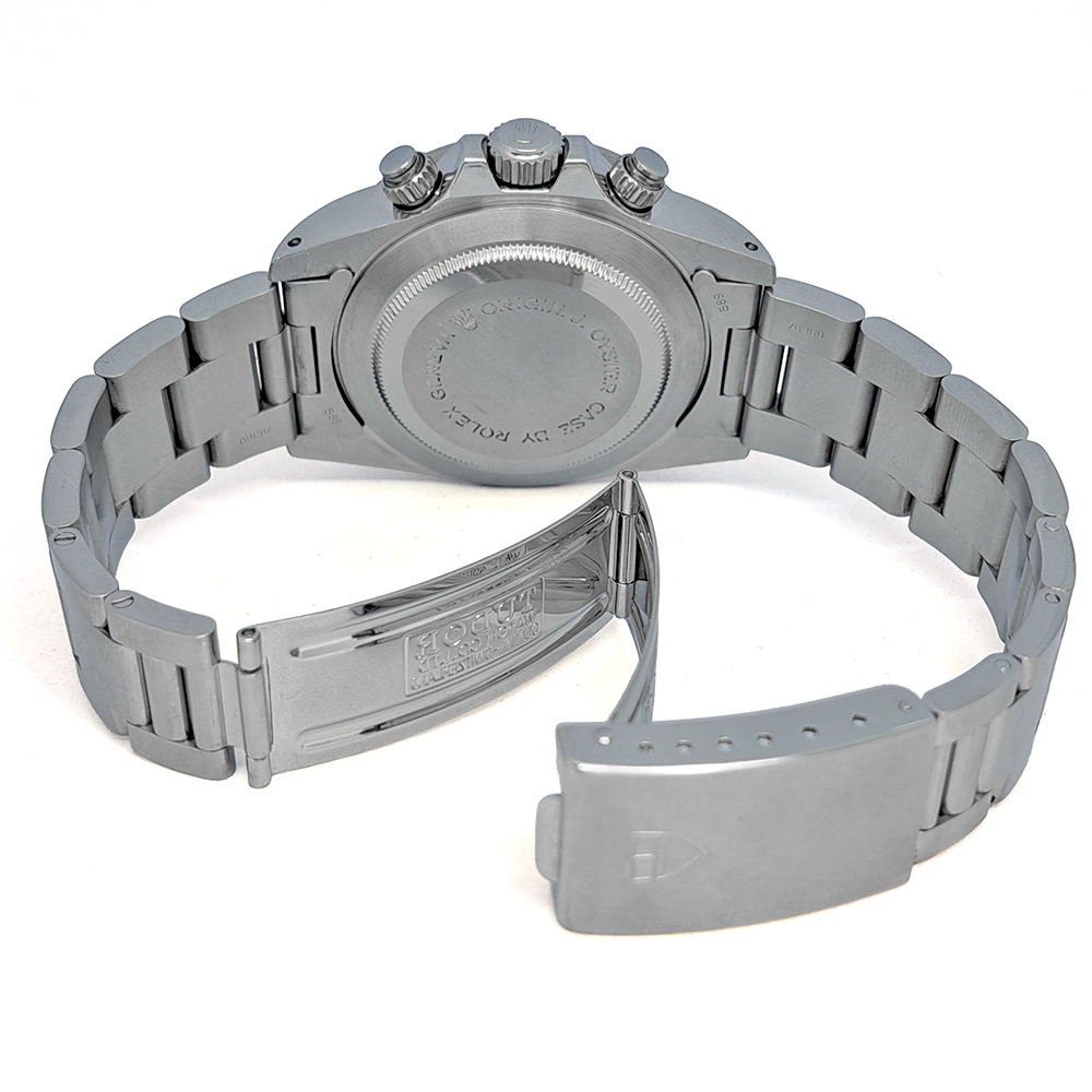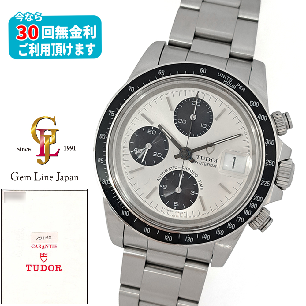 チューダー 79160 クロノタイム シルバーが入荷致しました。クロノタイム 第2世代 後期モデルである79160、分厚いかまぼこ型のケースが特徴で、ケースとリューズはロレックスの4桁リファレンスのデイトナと同じものが使用されていることもあり、文字盤のデザインこそ異なりますが、最もヴィンテージデイトナの面影を感じさせてくれるお品です。こちらの商品はルーペで拡大するとケース、風防等微細な小傷は御座いますが、肉眼ではそれ程気にならない程度です。ギャランティに1994年3月にドイツにて購入した記載があります。