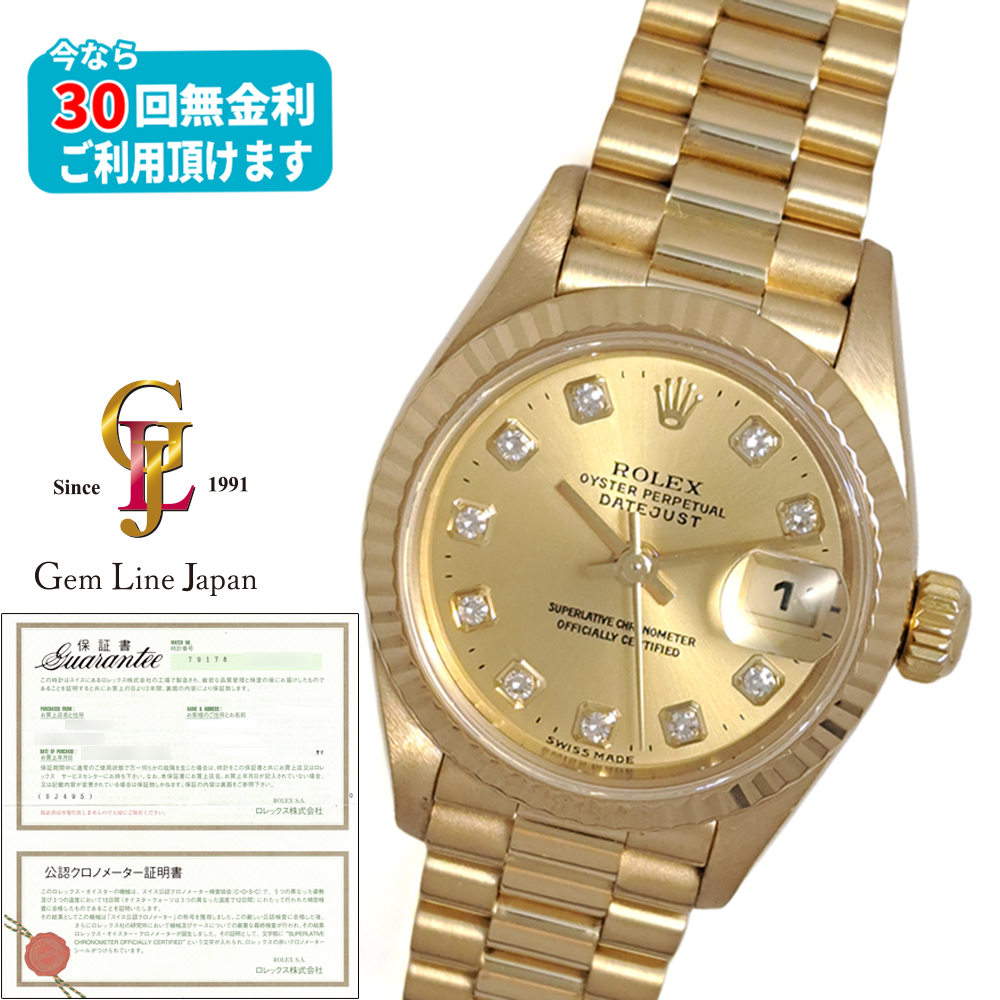 ロレックス デイトジャスト 79178G K番 金無垢 シャンパンゴールド 10P純正ダイヤ ギャラ付 レディース 自動巻 時計