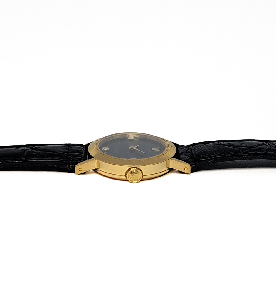 OH済 ロレックス チェリーニ 4081 E番 ブラック YG無垢 3P純正ダイヤ レディース 手巻き 時計