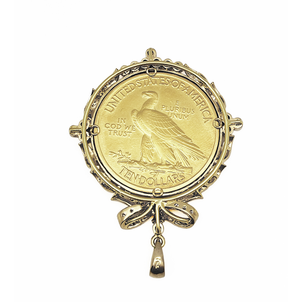 K21.6 K18 25.20g ヤング インディアン イーグル 10ドル 金貨 ダイヤモンド コイン トップ 日宝総研カード鑑付き