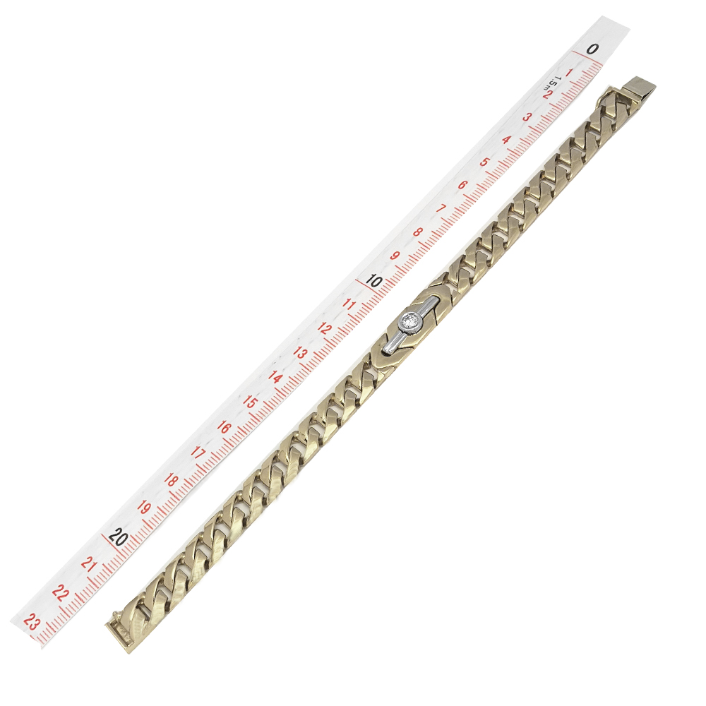 イエローゴールドのブレスレットに主石のダイヤモンドが煌めき手元を豪華な装いにしてくれます。太すぎず細すぎないタイプですので普段使いにもおすすめの一品です。