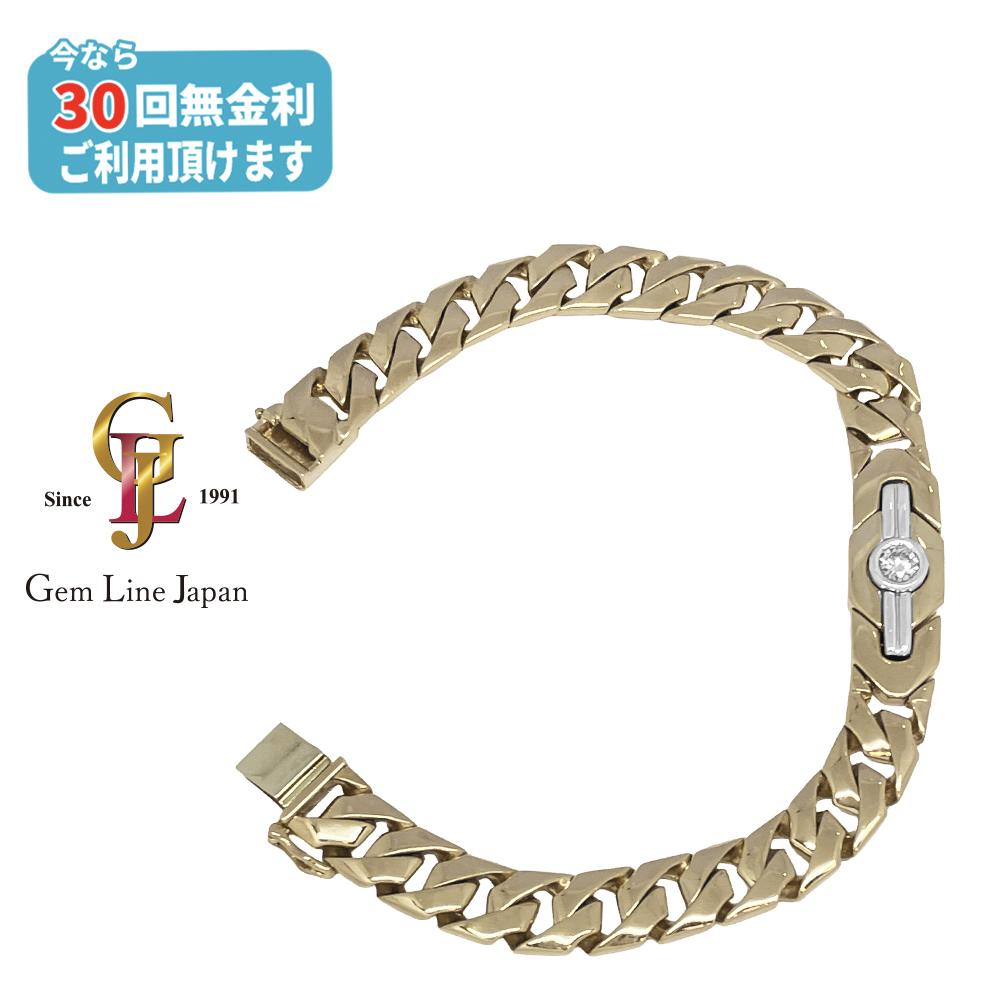 K18 Pt850 ダイヤモンド メンズ ブレスレットが入荷致しました。主石に良質な無色透明に近い一粒ダイヤをセッティングした豪華なメンズブレスレットです。