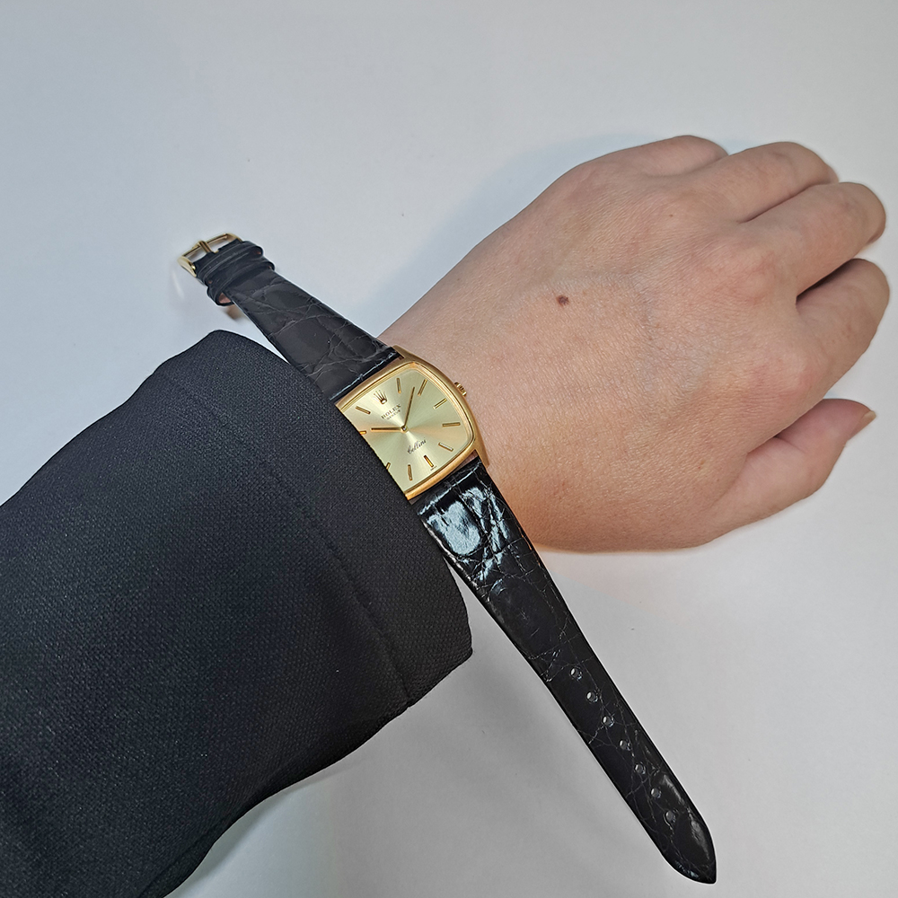 ロレックス チェリーニ 3805 YG金無垢 が入荷致しました。イタリア・ルネッサンス期の有名な金細工士「ベンヴェヌート・チェッリーニ」の華麗な作風にインスピレーションを得て作られたチェリーニコレクションは、時代を超えて愛されているドレスウォッチです。こちらの商品はルーペで拡大すると裏側ケースに極微細な打痕がありますが、肉眼ではそれ程気にならない程度で、それ以外は目立った傷等の無い綺麗な状態です。