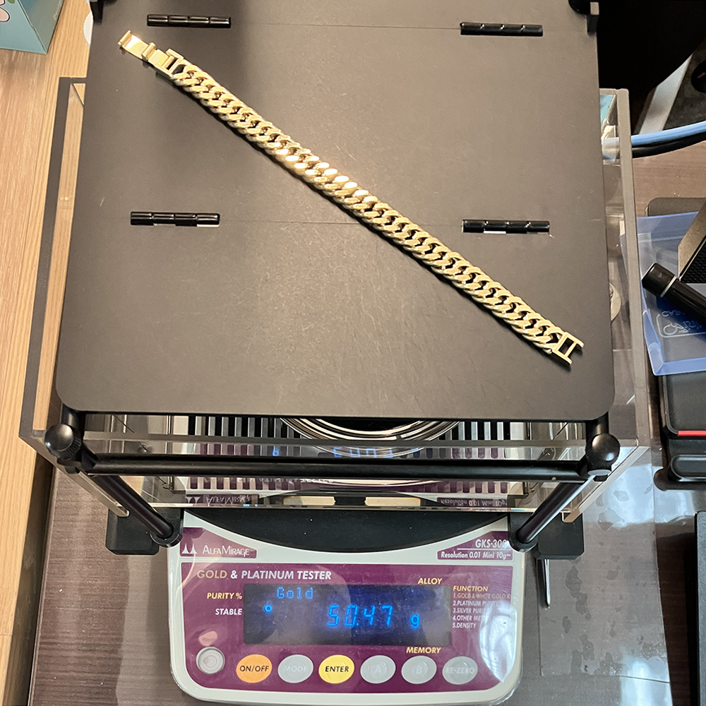 K18検定マーク付、50.47gの2面ダブル喜平ブレスレットです。