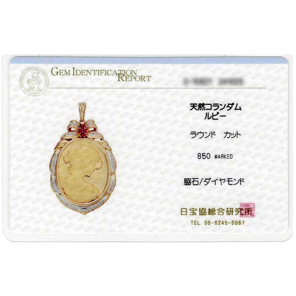 K24 K20 26.67g ルビー ダイヤモンド カメオモチーフ ペンダント トップ 日宝協総研カード鑑付