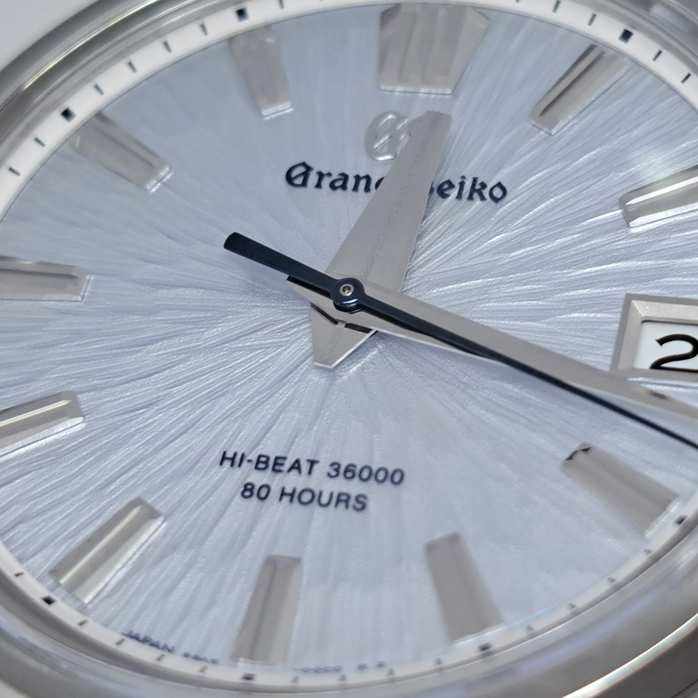 グランドセイコー SLGH027 エボリューション9 岩手山が入荷致しました。約70万年前に出来たと考えられる岩手山の荒々しい山容や北麓に広がる溶岩流の跡を岩手山の尾根筋から眺めた景観をダイヤルに表現されています。裏蓋はシースルーバックになっており、メカニカルハイビートを鑑賞する事が出来ます。ギャランティに2025年に国内正規販売店にて購入した記載があります。
