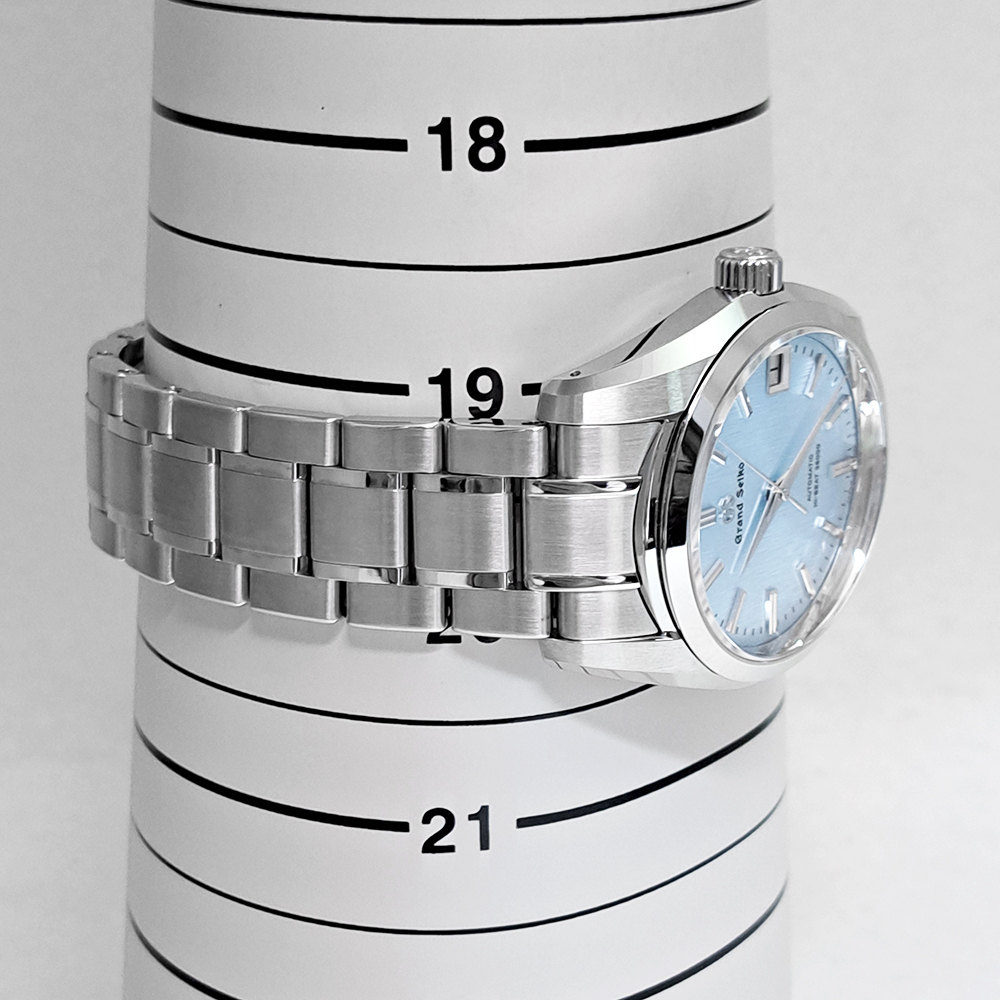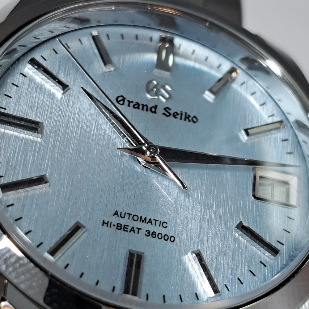 グランドセイコー SBGH347 ヘリテージコレクション 氷瀑が入荷致しました。グランドセイコースタジオ雫石から望む岩手山で厳冬期に見られる滝の水が流れている途中で凍結した現象の氷瀑をダイヤルに表現しています。幻想的な光景をダイナミックなパターンと美しいアイスブルーのダイヤルです。ギャランティに2025年に国内正規販売店にて購入した記載があります。