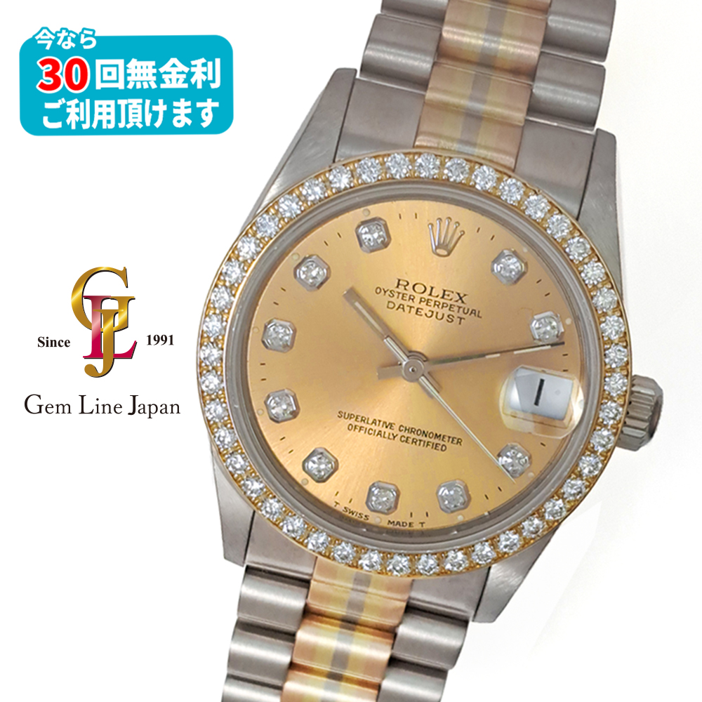 ロレックス デイトジャスト 68289G BIC トリドール W番 純正ダイヤベゼル・10P純正ダイヤ シャンパンゴールド ボーイズ 自動巻 時計