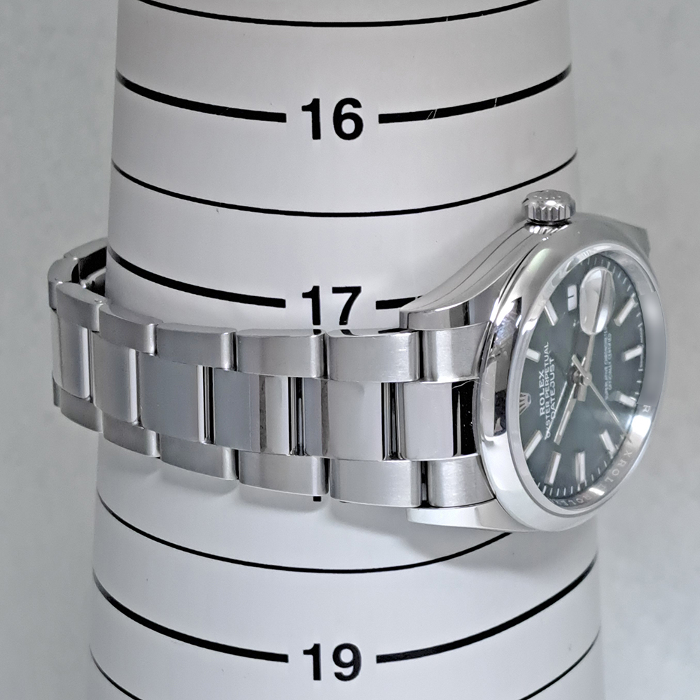 ロレックス デイトジャスト 126200 ミントグリーンが入荷致しました。サンレイ仕上げされた美しい深味のあるミントグリーンダイヤルが特徴的なモデルで、こちらは堅牢でスポーティーな雰囲気を醸し出しているオイスターブレスの逸品です。ギャランティに2024年に購入した記載があります。こちらの商品は、目立った傷等の無い非常に綺麗な状態で、ほとんど使用感の無い綺麗な状態です。