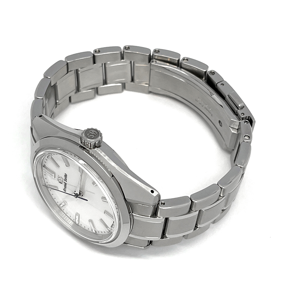44GSの進化版のラインナップの中でも最小のケースサイズで、どなたにも装着しやすいサイズ感です。ホワイトダイヤルに鮮やかなブルーの秒針が良く映えて視認性にも優れており、ビジネスシーンからカジュアルスタイルまで大いに活躍してくれます。