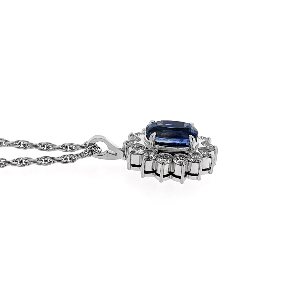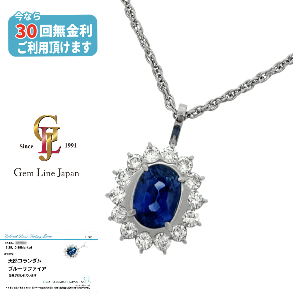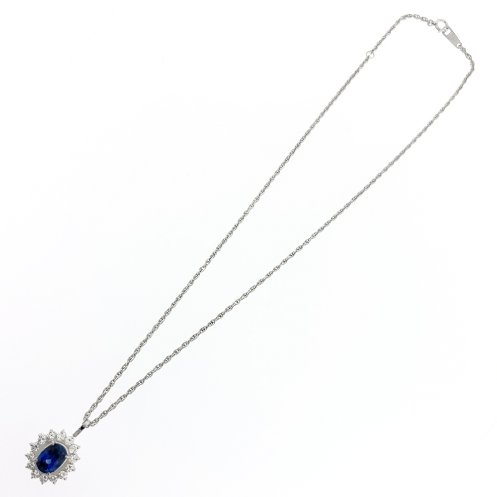 Pt900/Pt850 サファイア 3.25ct ダイヤモンド 0.85ct ネックレス GRJソーティング付