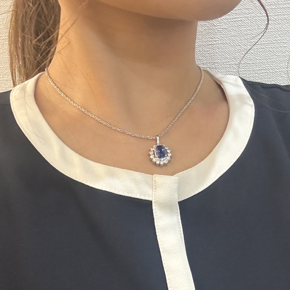 深く濃い青い煌めきが神秘的な3.25ctの大粒サファイアネックレスが入荷いたしました。高級感のある洗練されたプラチナ台に上質なダイヤモンド0.85ctの上品な煌めきがサファイアをより際立たせ、輝きが溢れ出します。