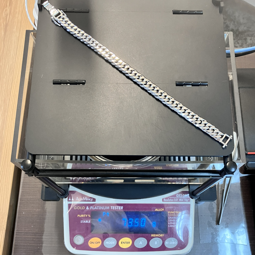 Pt850検定マーク付、73.50gの6面ダブル喜平ブレスレットです。