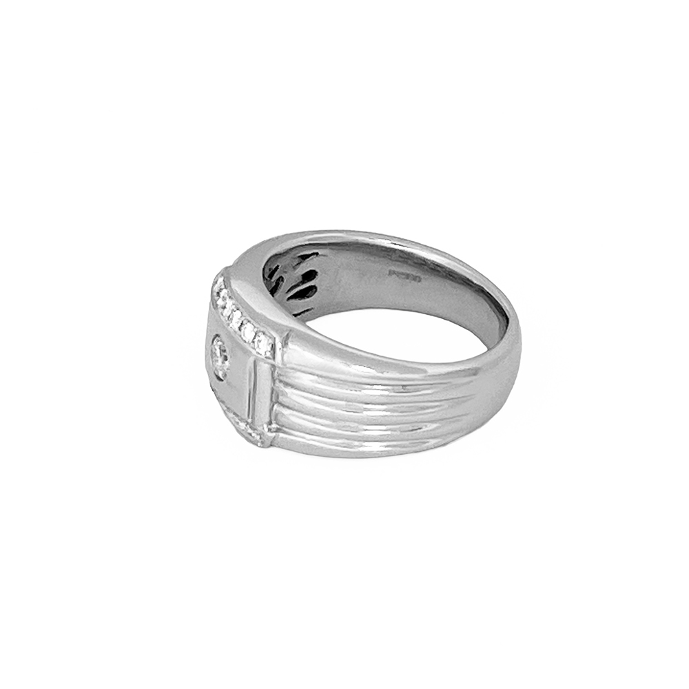 Pt900 ダイヤモンド 0.31ct 脇石 0.21ct プラチナ メンズリングが入荷しました。主石に無色透明に近い上質な一粒ダイヤモンド、その上下に良質なメレダイヤをセットした豪華に輝くメンズリングです。