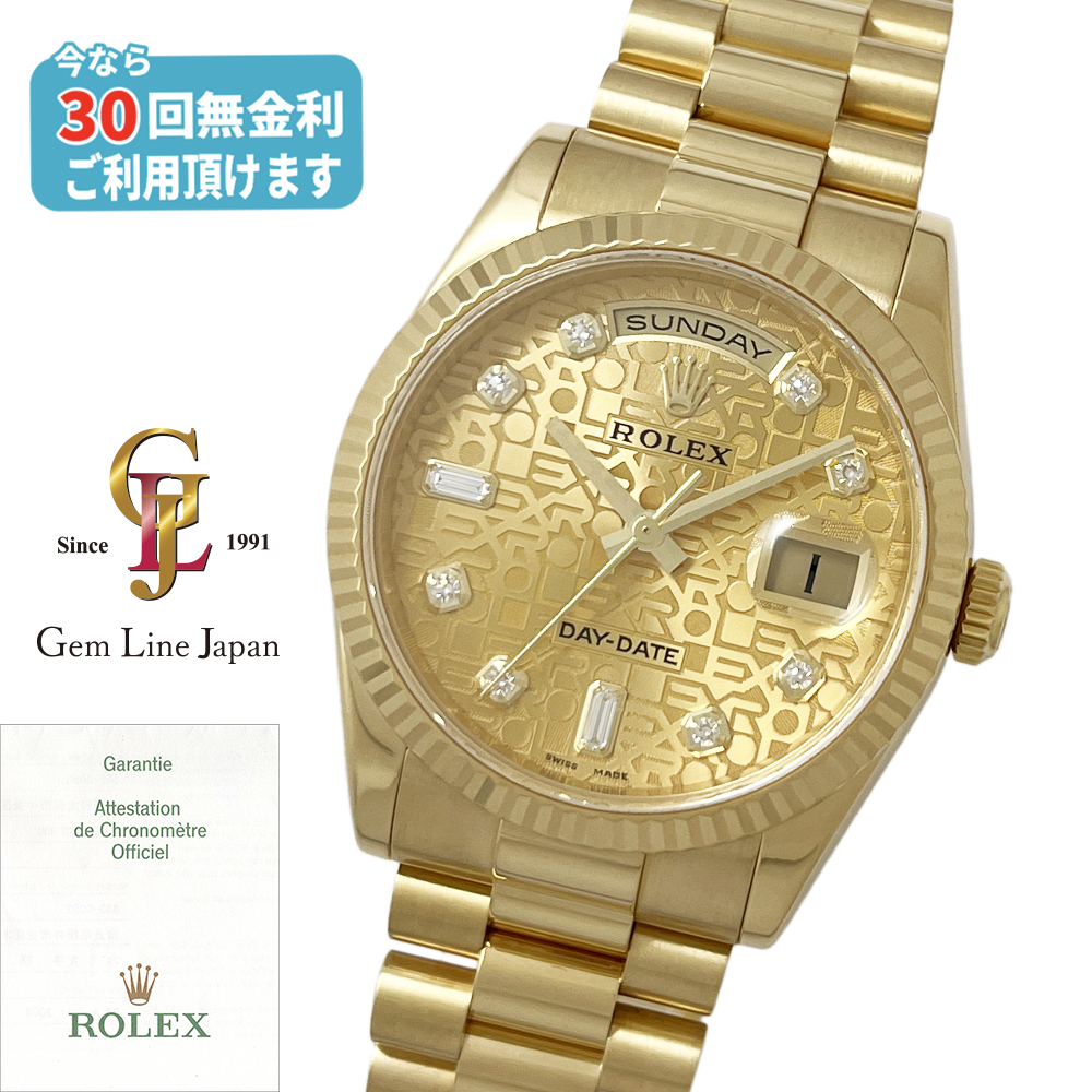 ロレックス デイデイト 118238A D番 新バックル シャンパン/彫コン/純正10Pダイヤ ギャラ付 メンズ 自動巻 時計