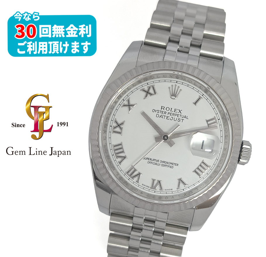 ロレックス デイトジャスト 116234 V番 WG/SS ホワイト ローマ メンズ 自動巻 時計