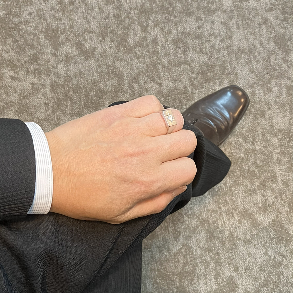 Pt900 ダイヤモンド 0.27ct メンズ 印台リングが入荷致しました。印台中央の後光彫には、無色透明に近い上質な一粒ダイヤモンドがセットされた豪華な一品です。