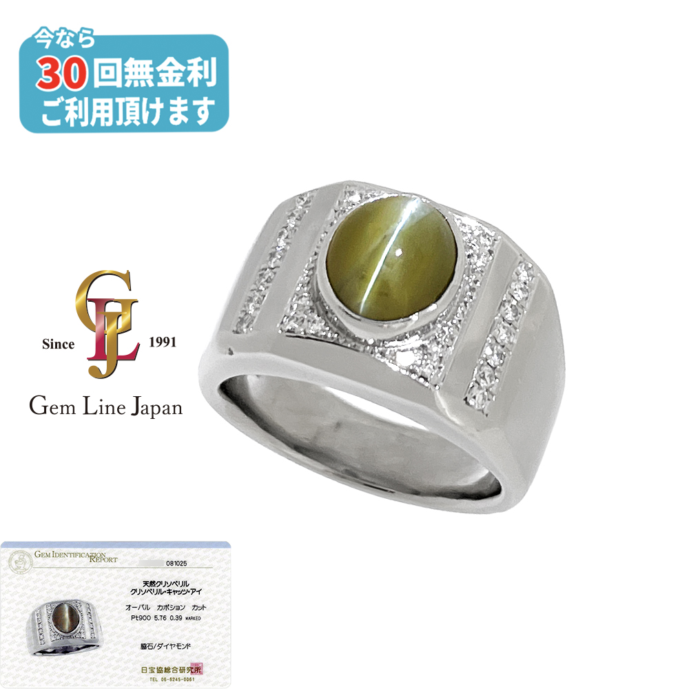 Pt900 44.69g キャッツアイ 5.76ct ダイヤモンド 0.39ct メンズ リング カード鑑別書付