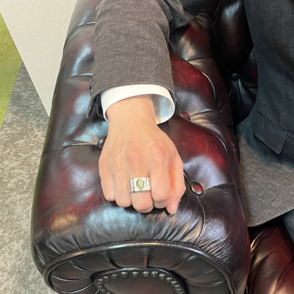 クリソベリル キャッツアイ 5.76ct プラチナ メンズ リング が入荷しました。光を当てると、まるで猫の目のように、真ん中に一本の光の筋を現すキャッツアイ。こちらは真っ直ぐにくっきりとシャトヤンシーが見られるハニーブラウン系の高品質なクリソベリルキャッツアイです。40gUPの迫力あるプラチナリングはお手元に力強い雰囲気を演出してくれます。研磨で取りきれない微細な凹みがありますが、肉眼ではほとんど気にならない程度で総合的に非常にきれいな状態です。
