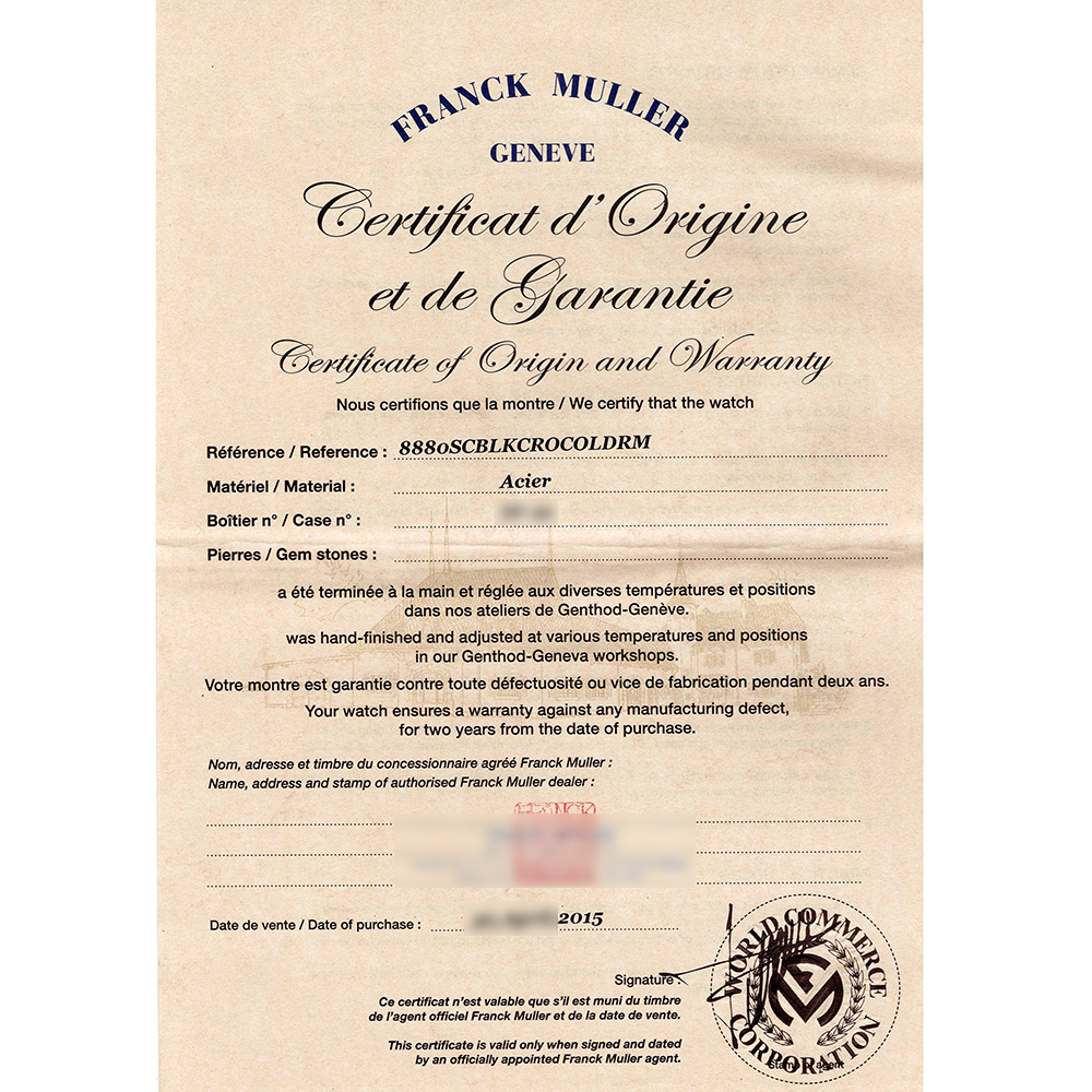 国内正規 フランクミュラー ブラッククロコ 8880SC BLK CRO カラードリーム ギャラ付 メンズ 自動巻 時計