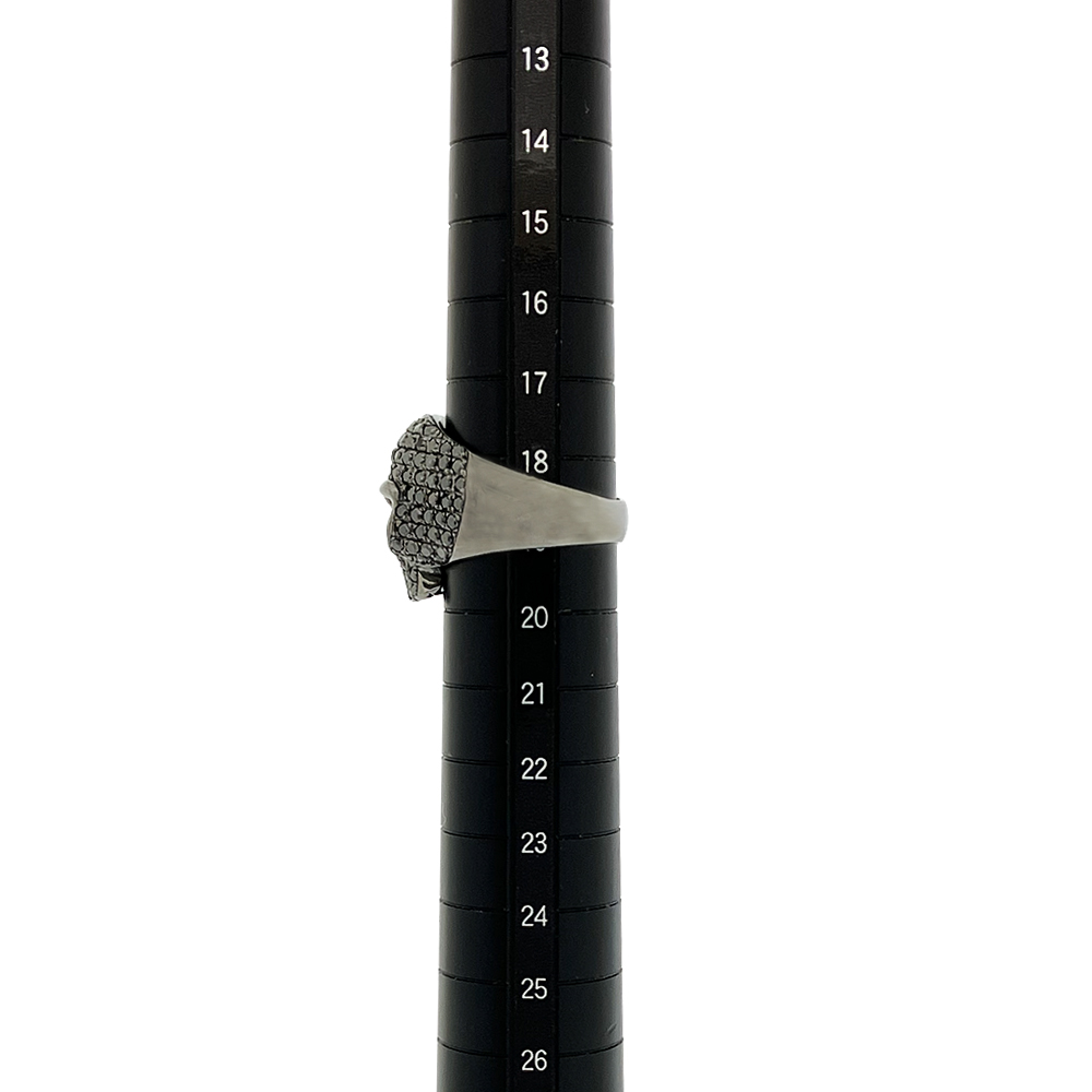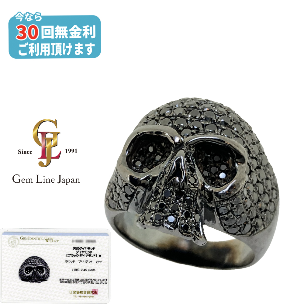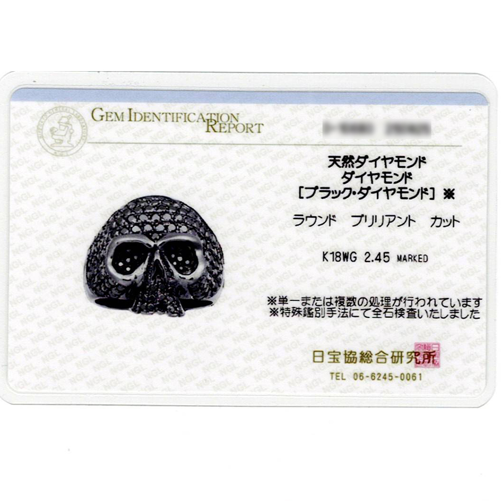 K18WG 16.74g パヴェ ブラックダイヤ 2.45ct メンズ スカル リング カード鑑別書付