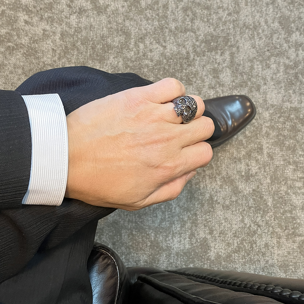 K18WG パヴェ ブラックダイヤ 2.45ct メンズ スカルリング が入荷しました。スカルアクセサリーは、古来より邪気を払い、生命を守る魔よけのアイテムと言われており、ブラックダイヤについても魔よけ・願望成就・成功の効果があると言われております。高級なジュエリーとしても、ヒーリングアイテムとしてもお使いいただける一品となっております。